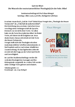 Seminarnachmittag mit Prof. Klaus Wengst - Gott im Wort Die Wurzeln der neutestamentlichen Theologie(n) in der hebr. Bibel